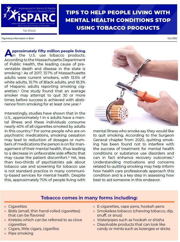 Tips to Help People Living with Mental Health Conditions Stop Using Tobacco Products