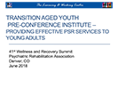 Transition Aged Youth Preconference Institute: Providing Effective Services to Young Adults |