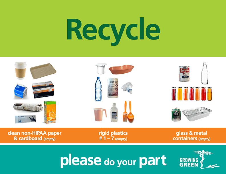 UMass Memorial continues to promote recycling programs throughout its facilities by increasing recycling bins in patient waiting areas, nurse’s stations, and nutrition rooms. Customized visual recycling and trash signs are strategically placed to help patients, visitors, and staff quickly identify what materials are recyclable.